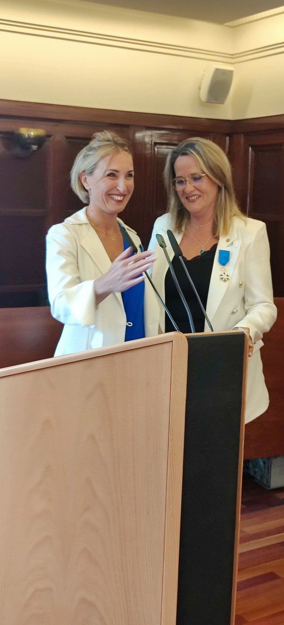 Présence des institutions, fédérations, élus, entrepreneurs, artisans, réseaux professionnels à l'occasion de la remise de la croix de chevalier de l'ordre national du mérite à Murielle Bourreau